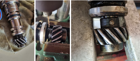 J'ai du percer la goupille sur l'ancien pour pouvoir la chasser et libérer l'engrenage et le monter sur le nouvel allumeur: